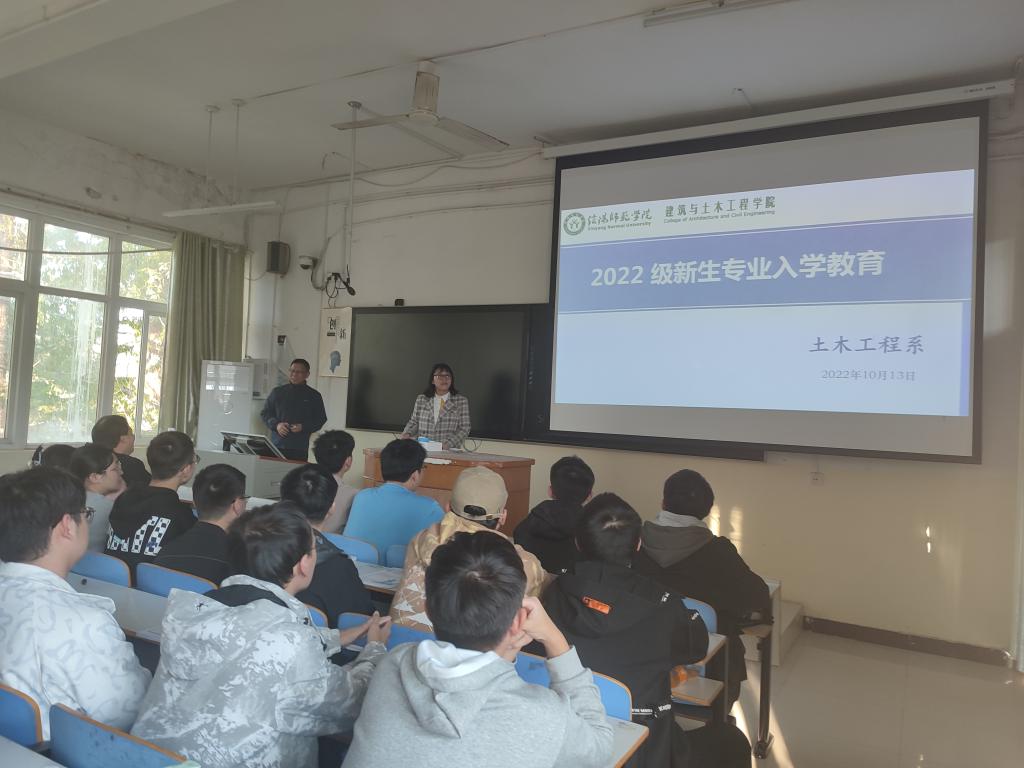 为使2022级土木工程专业新同学能更好的适应老员工活,更加详细的了解土木工程专业,明确学习要求。土木工程系于2022年10月13日下午四点半在教3-12教室举行了新生专业入学教育活动,本次活动邀请了我系王述超老师为专家做专题讲座。冀鹏副书记,高春华、张昊、邓林老师参加了本次讲座。