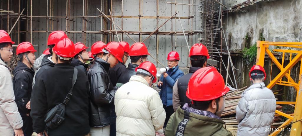 2023年2月25日,公司土木工程专业(城市地下空间工程方向)大四员工在土木工程系王述超、刘洋老师的带领下前往光山县金凯帝城市广场施工工地开展基坑工程毕业实习。