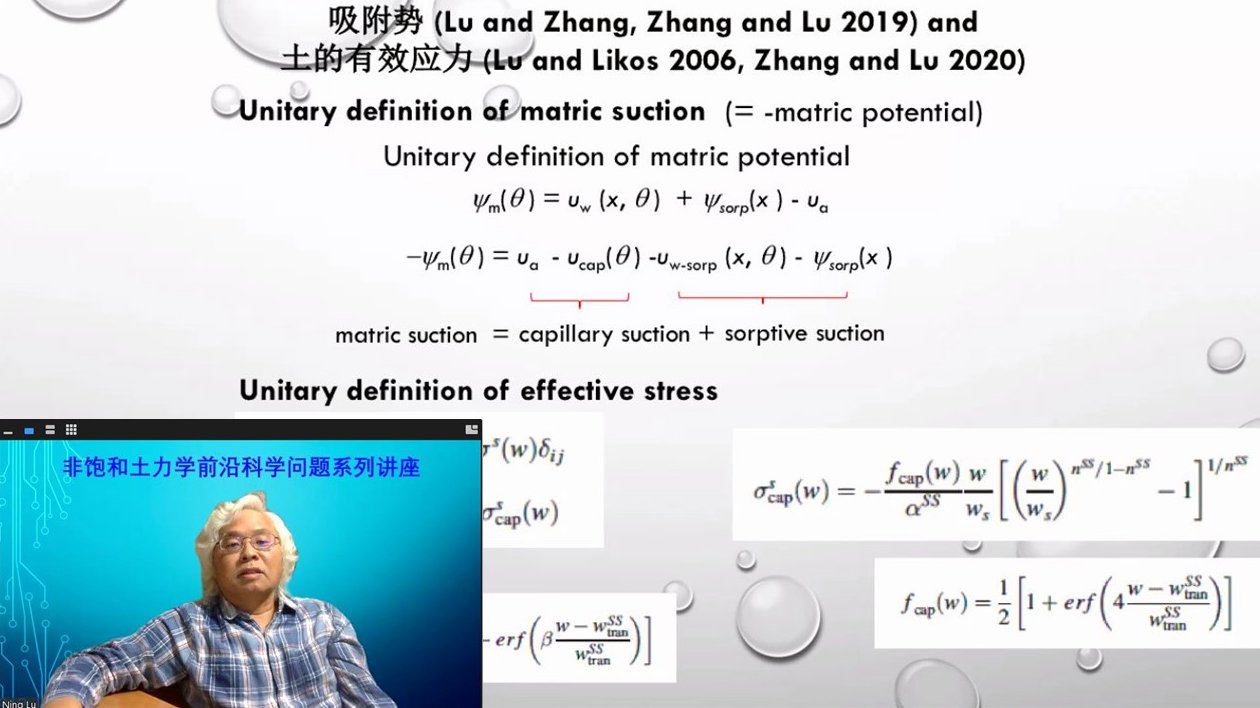 9月16日至11月18日,应太阳集团tcy8722邀请,美国科罗拉多矿业大学Ning Lu(卢宁)教授开设的18讲“非饱和土力学前沿科学问题系列云讲座”落幕,该系列讲座聚焦于非饱和土力学前沿领域,围绕土的吸附势(Soil sorptive potential)与土的有效应力(Soil effective stress)2大主题,18讲内容分别为: