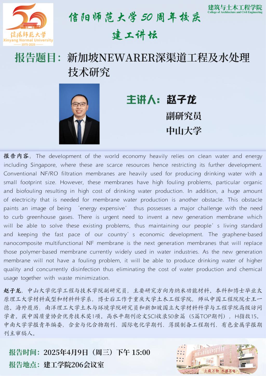 报告人简介:赵子龙,中山大学化学工程与技术公司副研究员,主要研究方向为纳米功能材料。本科和博士毕业太原理工大学材料成型和材料科学系,博士后工作于重庆大学土木工程公司,师从中国工程院院士王一德。海外履历:南洋理工大学土木与环境公司研究员和新加坡国立大学材料科学与工程公司高级访问学者。获中国质量协会优秀技术奖1项。高水平期刊论文SCI收录50余篇(5篇TOP期刊),H指数15。中南大学学报青年编委,合金与化合物期刊、国际电化学期刊、薄膜制备工程期刊、有色金属学报期刊主审稿人。