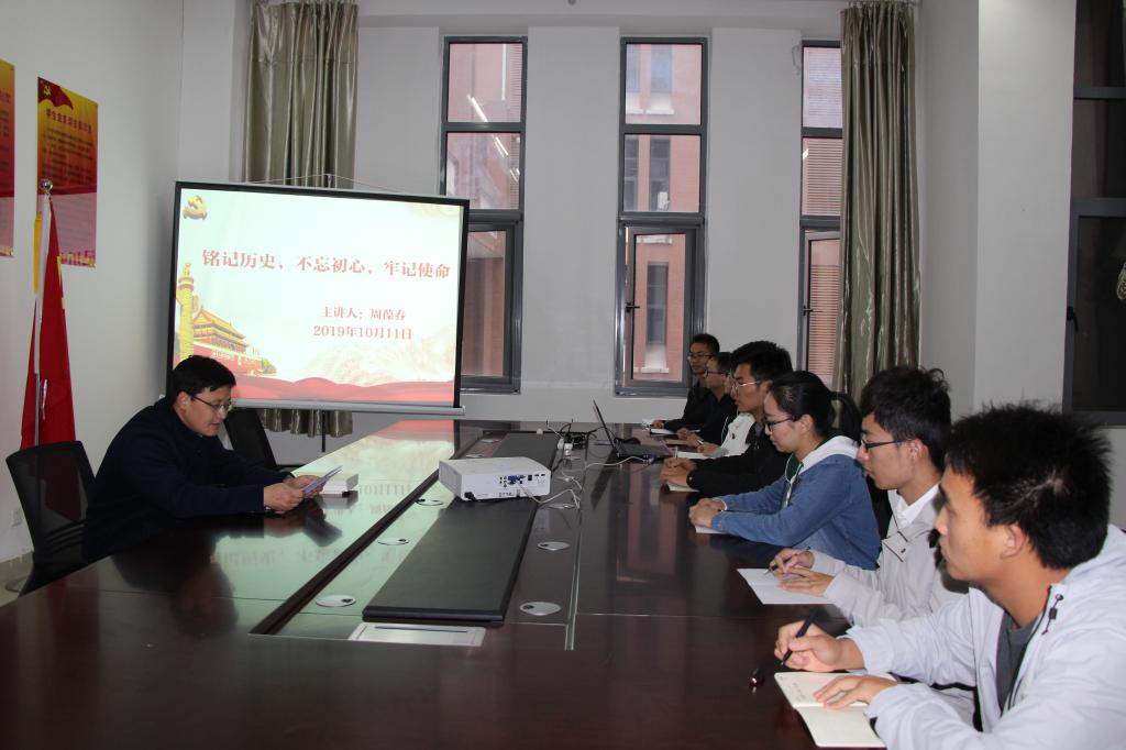 10月11日,公司副经理周葆春以《铭记党史,不忘初心,牢记使命》为主题,在综合实验楼203室“党员之家”为研究生党员上专题党课。周葆春具体阐释了什么是中国共产党人的初心和使命,并强调,学习铭记党史是牢记党的初心和使命的重要途径。最后,周葆春从“坚守马克思主义理想信仰不动摇”“坚持党领导一切的忠心不动摇”“坚持全心全意为人民服务的赤子之心不动摇”“坚持实现中华民族伟大复兴的雄心不动摇”“坚持实现中华民族伟大复兴的信心不动摇”五个方面与大家分享交流了如何坚守和践行初心使命。