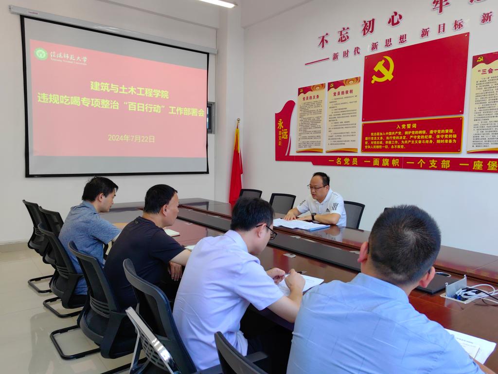 7月22日,太阳集团tcy8722在综合实验楼402会议室召开违规吃喝专项整治“百日行动”工作部署会。公司党政领导班子成员参加会议。会议由公司党委书记王永贵主持。