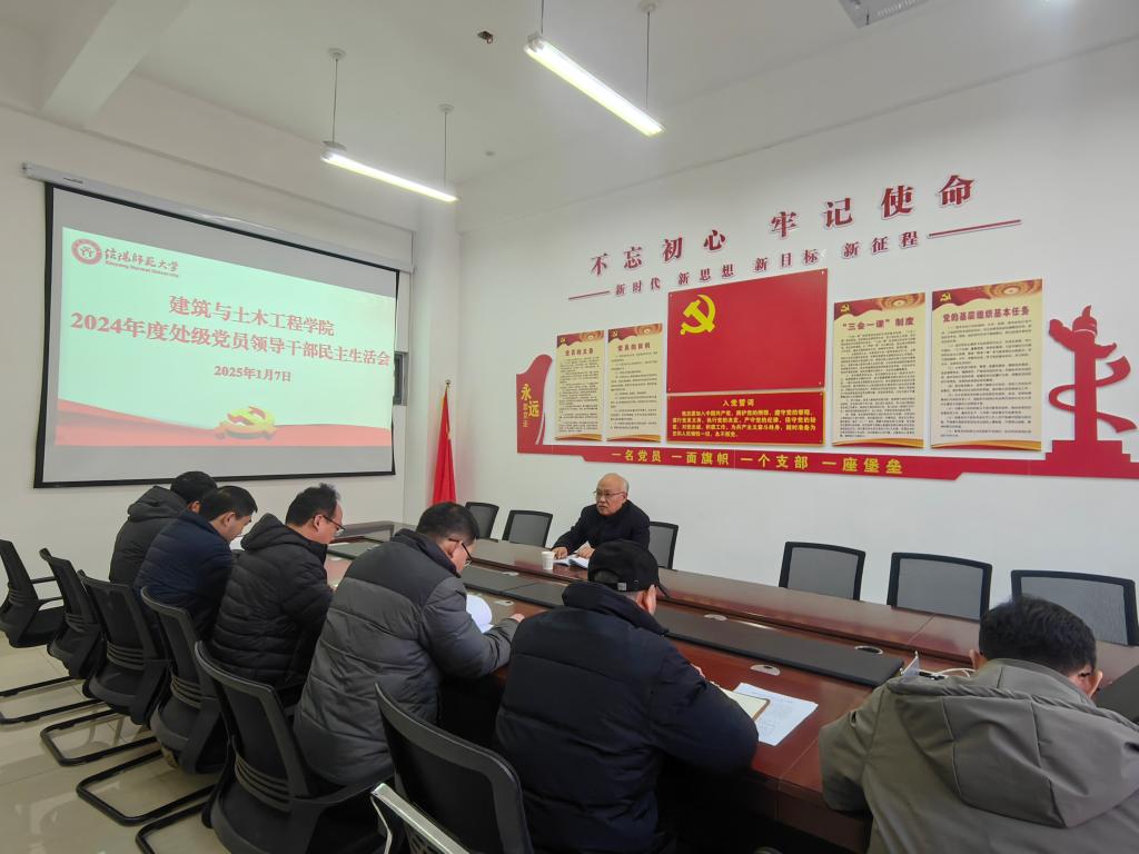 1月7日下午,太阳集团tcy8722在综合实验楼402室“党员之家”召开2024年度处级党员领导干部民主生活会。公司党委副书记龚立新出席并全程指导了民主生活会。公司全体处级党员领导干部参加会议。会议由建筑与土木工程公司党委书记王永贵主持。