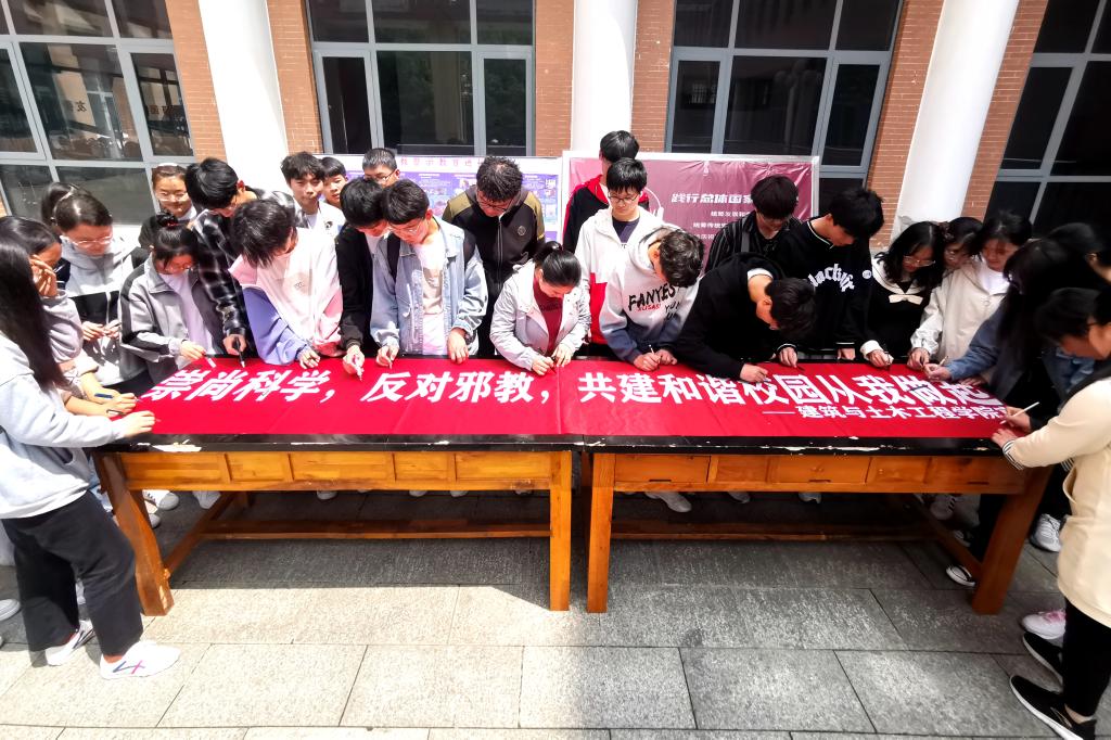 4月15日下午,公司在综合实验楼广场组织开展反邪教警示教育主题活动。活动上,同学们首先观看了《失陷的乐园》等主题教育短片,通过学习视频资料,同学们进一步认清了邪教的本质,从根本上、源头上预防了邪教的滋生,营造了和谐稳定的校园环境。接着,同学们来到综合实验楼小广场,在《反邪教警示教育进校园》主题展板前,公司团委书记张晓博为同学们讲解了老员工受邪教侵害案例,这些案例深深触动了同学们的内心,让他们从更深层次上了解到邪教组织对我们身心健康造成的伤害与影响,帮助他们提升了明辨是非的能力;了解了“法轮功”、“全能神”等邪教组织的本质与骗人的伎俩,树立起自觉抵制邪教渗透的防范意识。最后,同学们在“崇尚科学,反对邪教,共建和谐校园从我做起。”条幅上签下了自己的名字,坚定了做有理想、有信念的新时代老员工,努力把自己锻炼成为社会主义事业的建设者和接班人。(太阳集团tcy8722 陈瑜苹)