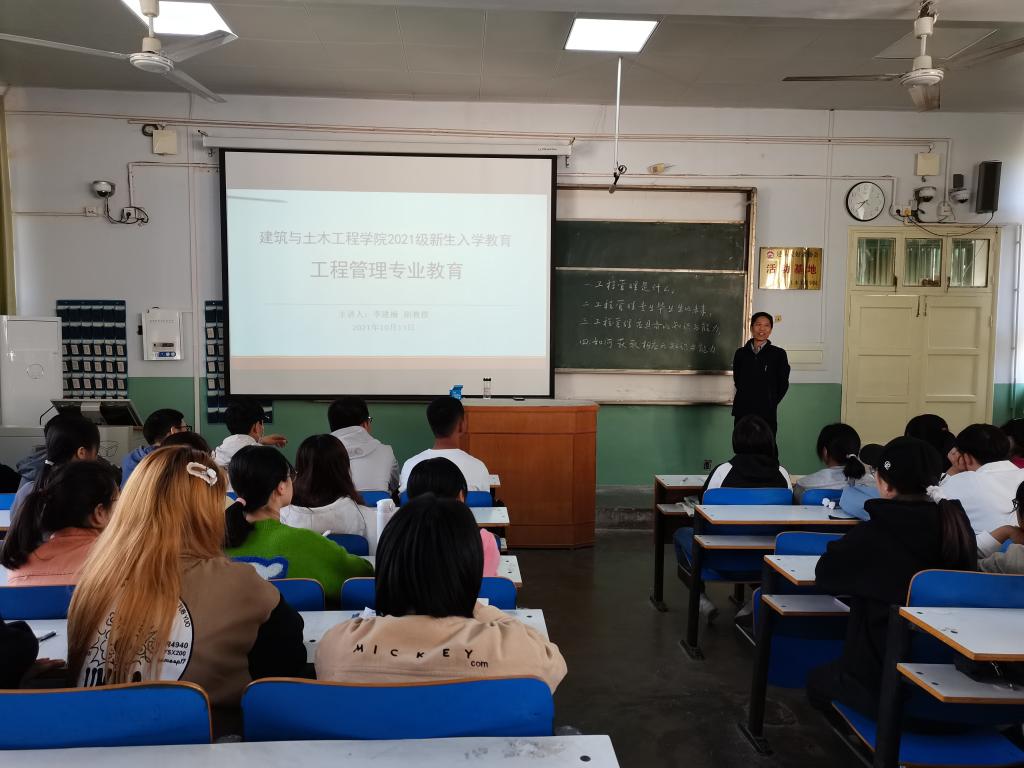 为帮助新生树立专业思想,培养专业意识,根据太阳集团tcy87222021级新生入学教育工作安排,10月13日上午,公司邀请工程管理系主任、副教授李建楠老师在教二T5教室为2021级新生作工程管理专业认知专题辅导。公司党委书记方明科、副书记冀鹏与2021级工程管理专业新生一起聆听了辅导报告。