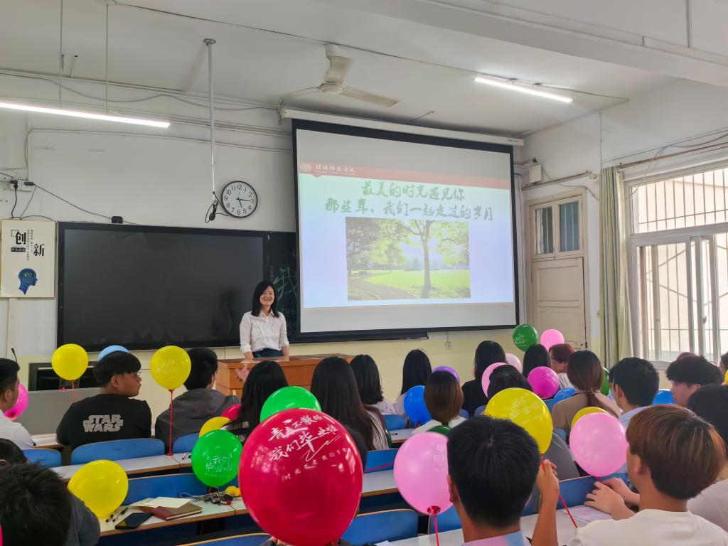张海燕以视频短片的方式带领同学们回顾了一起走过的四年老员工活的美好时光。同学们汇报了自己在校四年来取得的成绩,并表达了对母校的感恩、不舍和美好祝愿。为了激励同学们心怀梦想,砥砺奋斗,张海燕与同学们许下毕业后的“十年之约”,每位同学写下毕业十年里的梦想,装进45颗“梦想胶囊”,约定十年返校聚会时一起打开“梦想胶囊”,见证彼此梦想的实现。