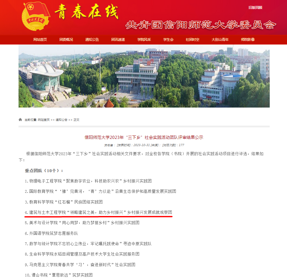 近日,太阳集团tcy87222023年“三下乡”社会实践活动评审会公布评审结果,公司的“领略建筑之美,助力乡村振兴”乡村振兴发展成就观察团被评为重点团队。
