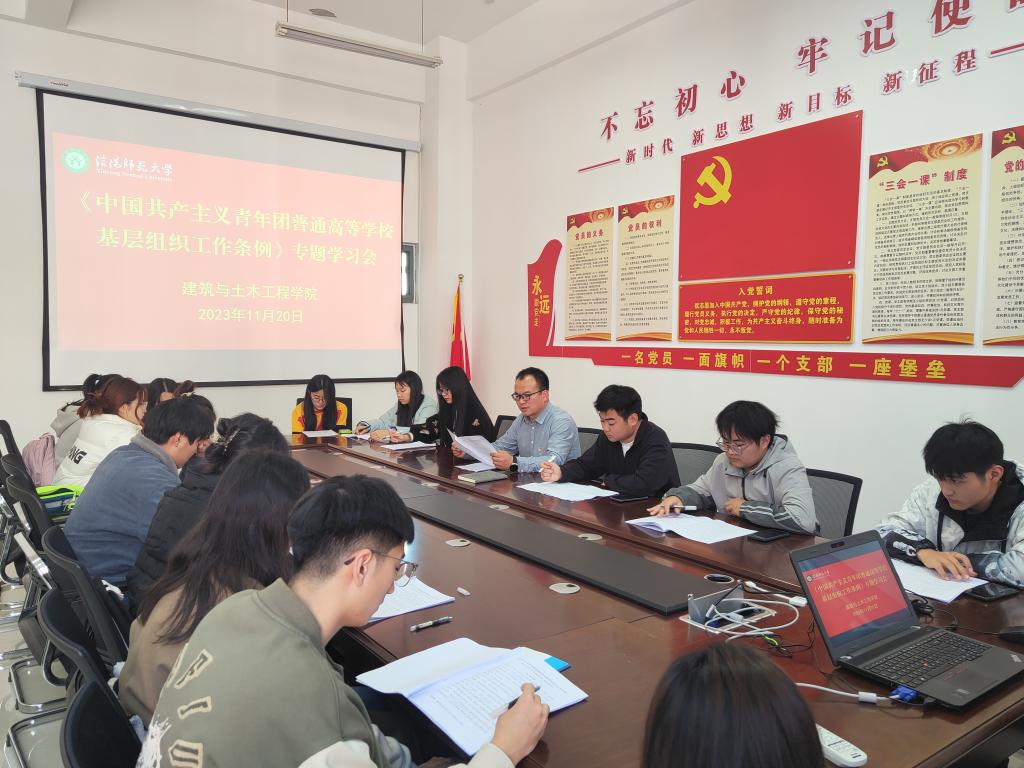 会上,冯舒心带领大家逐字逐句研读了《中国共产主义青年团普通高等公司基层组织工作条例》原文,重点组织学习了高校基层团组织的指导思想、工作原则、组织设置、工作职责和队伍建设等内容,与会团干部结合工作和学习实际,分享交流了自己的学习体会。