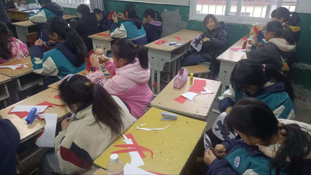本次义教活动响应国家德智体美劳全面发展的号召,以培养孩子们动手能力,提高综合素养为主,分为英语,体育,美术和手工四个部分。英语教室里,志愿者教孩子唱英语歌曲,一起做英语小游戏,既带来了欢声笑语,又提高了英语知识;操场上,体育活动如火如荼,志愿者讲解篮球基础动作,与孩子们进行篮球接力比赛,增强小朋友的身体素质;美术教室里,志愿者们拿出提前准备好的文房四宝教孩子们在书签、扇子上书写作画,将绘画工具与中国传统文化结合,画出脸谱、中国结等,向孩子们展示中华优秀传统文化的魅力;手工教室里,志愿者详细地介绍了剪纸的基本概念、方法和技巧,帮助孩子们初步了解剪纸的艺术特色,随后教导孩子们用剪刀和彩纸裁出一幅幅生动的作品,提高了孩子们的动手能力,体验艺术创造所带来的乐趣和成就感。