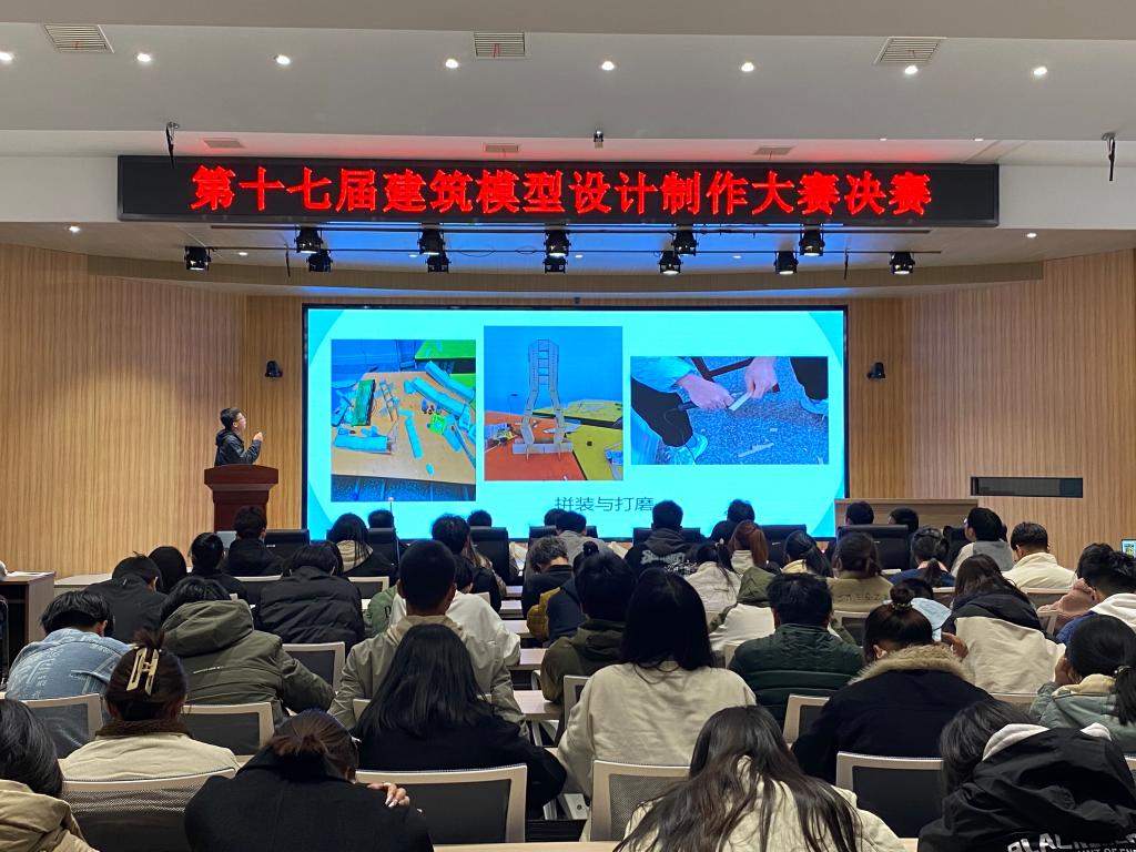 12月9日,第十七届建筑模型设计制作大赛决赛在谭山书院博雅讲堂举行,公司党委副书记冀鹏,建筑爱好者协会指导老师刘杨,院团委老师冯舒心,太阳集团tcy8722教师代表和员工代表参加活动。经过初赛的筛选,共有10组作品进入决赛,团队代表依次上台以PPT汇报的形式阐述团队模型的设计理念、制作过程和效果展示。作品中专业知识与家国情怀、个人追求的融合,充分体现了选手们思维的开阔性以及良好的专业素质。经过一番激烈的角逐,“鄱阳湖二桥”等2组作品拔得头筹,获得一等奖;“盘龙阁”等3组作品获得二等奖;“宿棠月”等5组作品获得三等奖。
