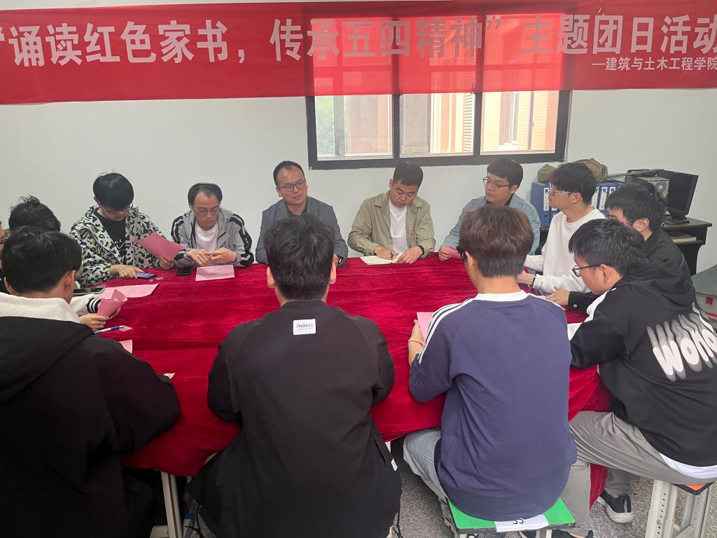 红色家书明初心。4月30日,公司在综合实验楼2楼活动室开展“诵读红色家书,传承五四精神”主题团日活动,2022级土木工程1班的同学们声情并茂地诵读了陈觉、陆更夫、江姐、夏明翰等人的家书,公司党委副书记冀鹏鼓励大家体悟红色家书字里行间的拳拳情义,领略革命先烈们的家国情怀和初心使命,让五四精神在新时代熠熠闪光。