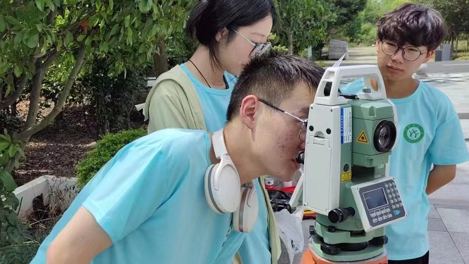 探寻非遗记忆,承文化之脉。炎炎烈日下,实践队员们正使用专业器材开展工程测量,东岳村是河南省第一批传统村落,不仅保留着大量的古建筑,还有着光山花鼓戏等非遗资源,队员们在参观完东岳古街和花鼓戏传承中心后,便开始进行建筑测量,将“第一课堂”知识融入“第二课堂”,为东岳古建的规划发展贡献自己的一份力量。“这次社会实践活动,对我们而言,不仅仅是一个简单的体验过程,更是一个深度学习和自我成长的过程,我们不仅感受到中华优秀文化的深厚底蕴和独特魅力,还将课本上的知识应用到了乡村振兴中。”2022级土木工程专业员工李秦扬讲到。