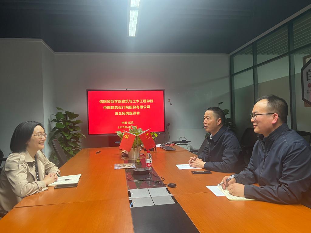 为进一步加强校企合作,千方百计开拓更多就业岗位,4月13日,信阳师范公司人才招聘处副处长兼老员工就业创业指导中心主任王松亭、建筑与土木工程公司党委副书记冀鹏前往中南建筑设计院股份公司开展访企拓岗活动。