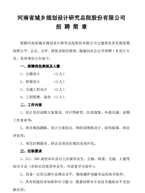 河南省城乡规划设计研究总院股份有限公司招聘简章