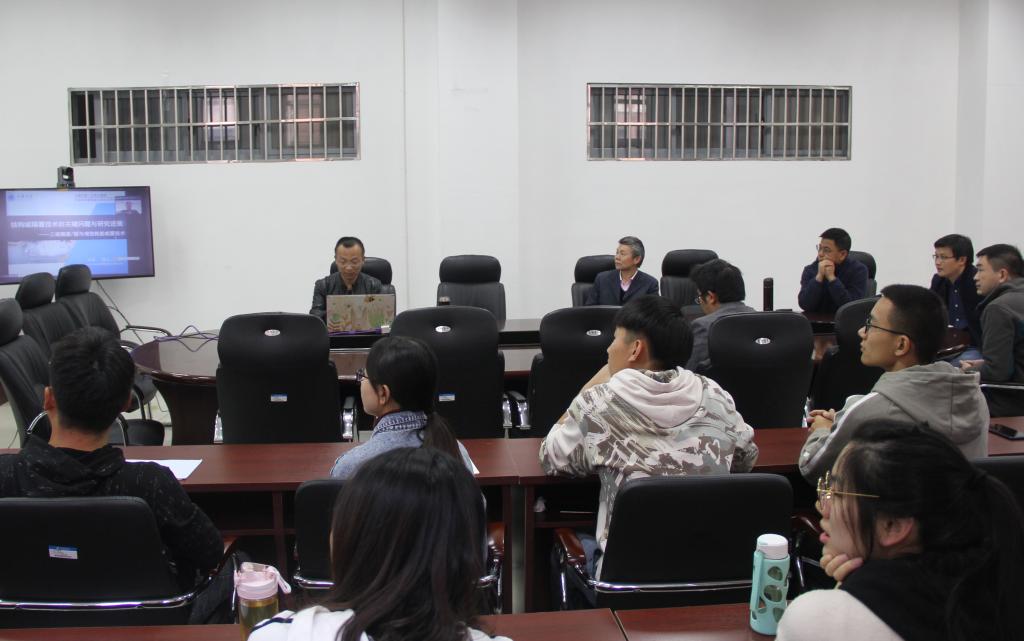 报告中,许浩简要回顾了减隔震技术研究的背景,介绍了地铁上盖/沿线结构的三维隔震减振和超高层结构的增效耗能减振,并重点阐述了核电结构的三维隔震。报告结束后,许浩与师生们展开了讨论和交流。