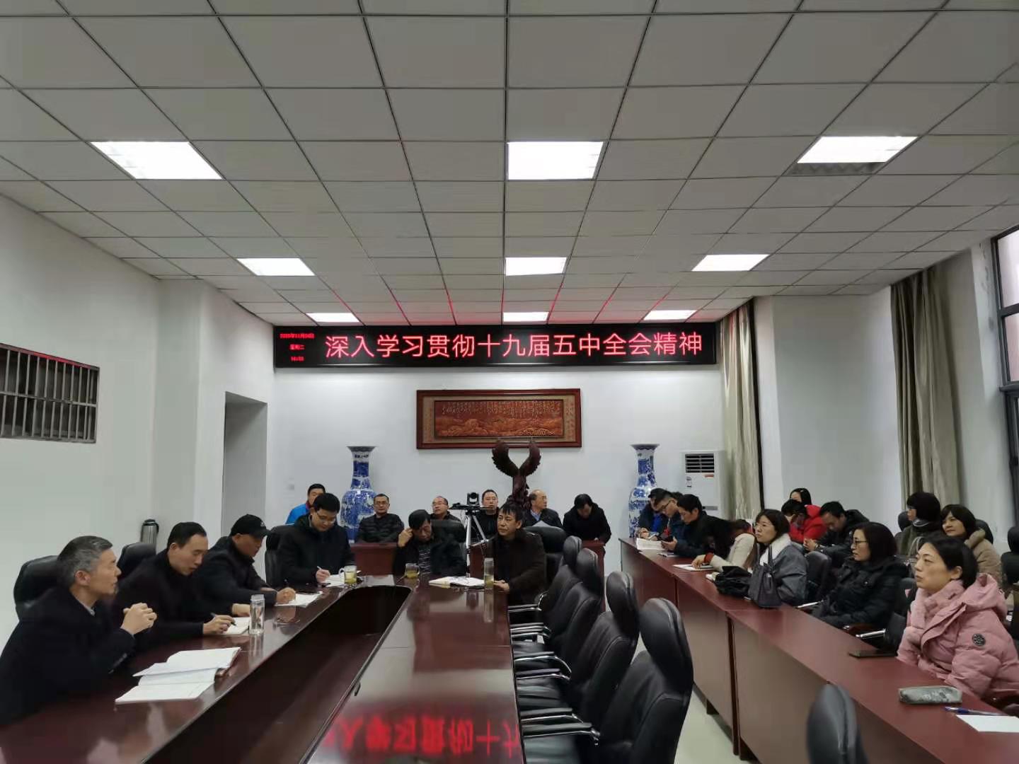 11月9日,公司党委召开理论学习中心组学习会,深入学习研讨党的第十九届五中全会精神。与会人员集体学习了全会精神和《中共中央关于制定国民经济和社会发展第十四个五年规划和二〇三五年远景目标的建议》的主要内容。会议强调,要充分认识党的十九届五中全会召开的重大意义,把学习好、宣传好、贯彻好党的十九届五中全会精神作为当前和今后一个时期的重要政治任务,要准确把握党的十九届五中全会作出的决策部署,深刻领会“十四五”时期我国发展的指导思想、主要目标和重点任务,把学习宣传贯彻党的十九届五中全会精神与高校的职责使命紧密结合起来,与推动公司和公司的改革发展紧密结合起来,切实推动公司和公司各项事业高质量发展。