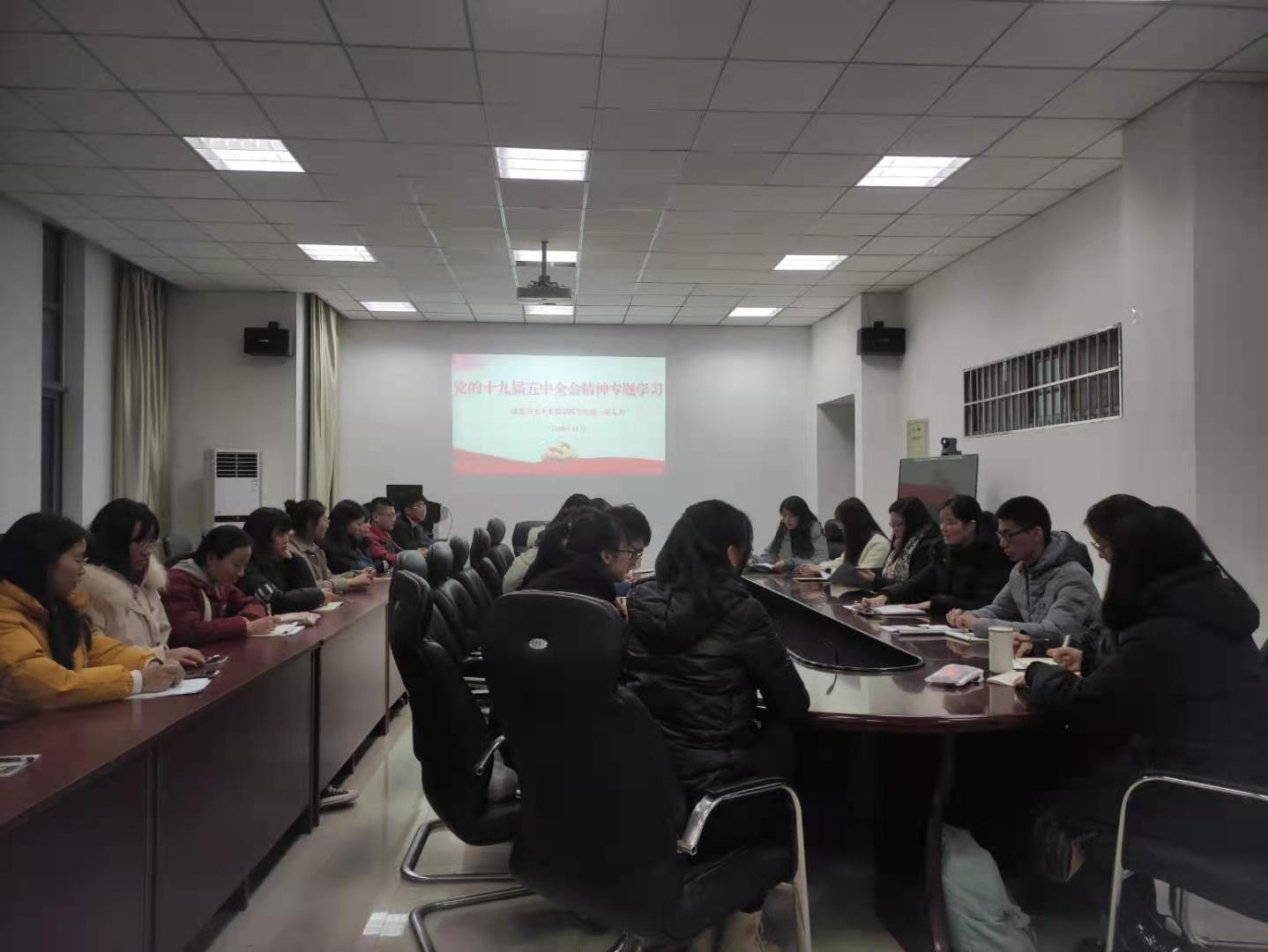 为深入学习宣传贯彻党的十九届五中全会精神,巩固深化“不忘初心、牢记使命”主题教育成果,太阳集团tcy8722采取多种方式,通过党委理论学习中心组专题学习、教职工政治理论学习、党支部“三会一课”等形式深入开展学习研讨活动,确保全会精神落地生根。