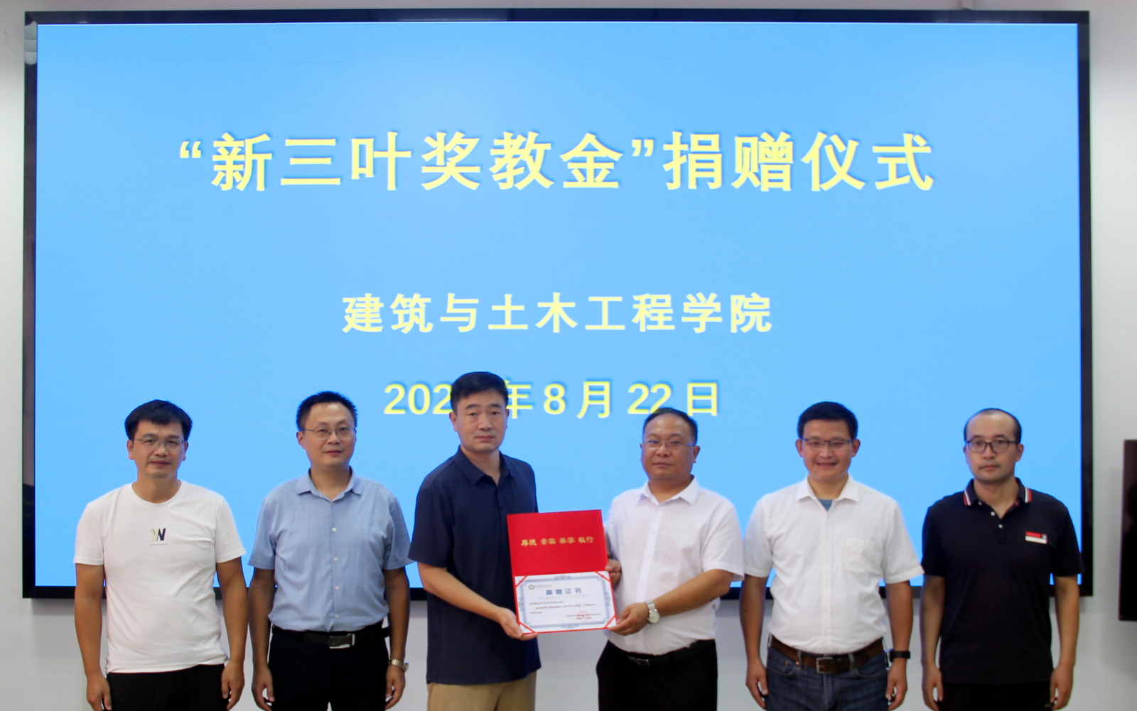 8月22日下午,信阳新三叶科技有限公司奖教金捐赠仪式在太阳集团tcy8722206会议室举行。信阳新三叶科技有限公司总经理王锡均、技术经理张云帆,公司党委书记方明科、经理周葆春、副经理肖琪聃、科研秘书马文强参加了捐赠仪式。