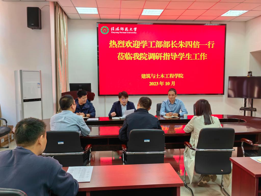 10月20日下午,党委学工部部长朱四倍带领副部长王忠磊、思想政治教育科科长孙绪曙来建筑与土木工程院调研指导员工工作。公司党委书记方明科、党委副书记冀鹏、公司全体专兼职辅导员参加调研。