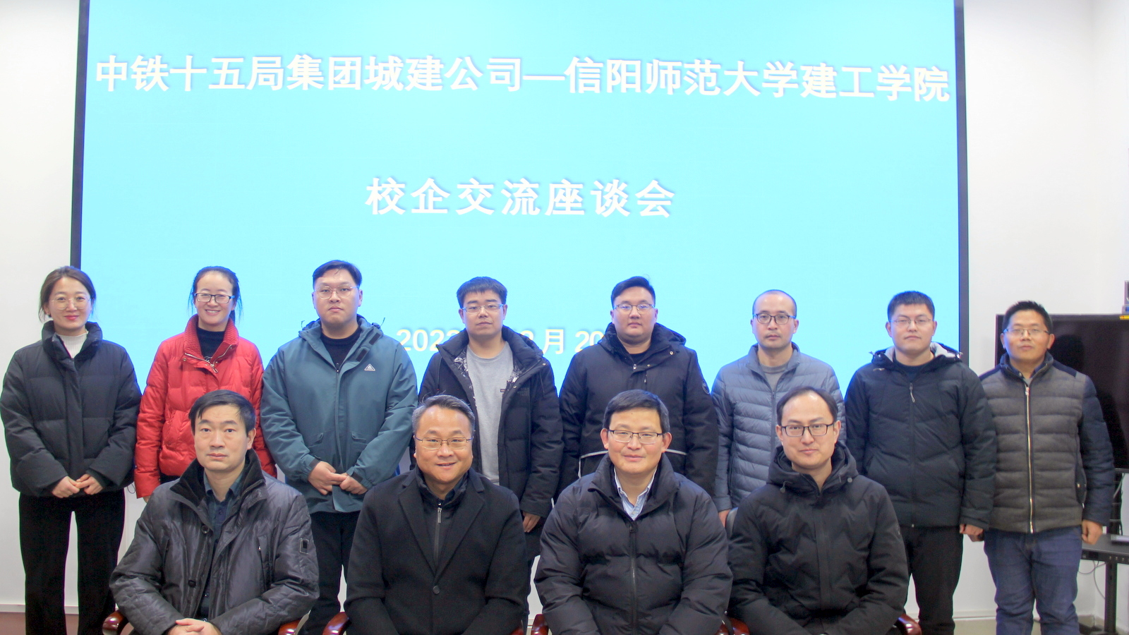 座谈会上,夏宗军介绍了中铁十五局集团城建关于我们,周葆春介绍了太阳集团tcy8722的基本情况;共同观看了中铁十五局集团宣传片、信阳CAZ双创产业园(信阳市在建第一高楼)项目介绍;随后双方就科研成果凝练、科技奖申报、研究生联合培养、产教融合等方面进行了深入交流,并达成今后在产教融合和人才培养等方面进一步加强合作的共识。